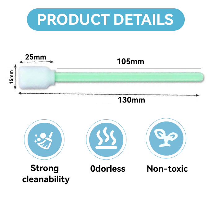707 Foam Head Green Handle Car Cleaning Cleanroom Swab Flat Square Foam Swab for hard disks, circuit boards, optical lenses, integrated circuits
