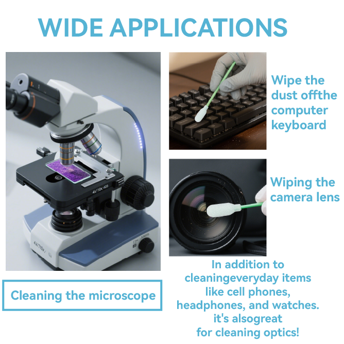 743 Lint Free Green Handle Car Cleaning Cleanroom Swab Flat Square Polyester Swab for hard disks, circuit boards, optical lenses, integrated circuits