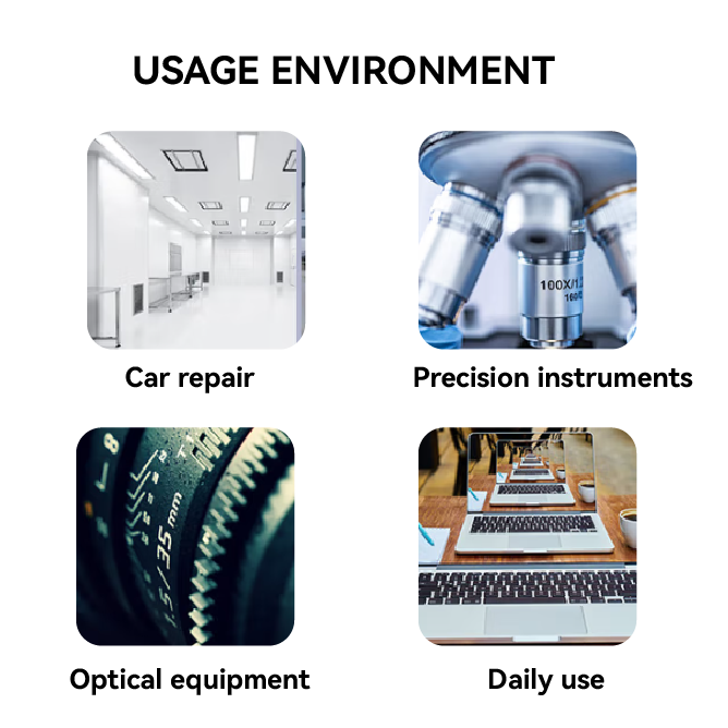 1.Suitable for use in ISO Class 5 (Class 100) cleanrooms. 2.Cleanroom Cleaning: Ideal for wiping surfaces, equipment, and tools in cleanrooms. 3.Laboratories: Suitable for use in laboratories for cleaning and wiping tasks. 4.Electronics Manufacturing: Effective for cleaning delicate electronic components. 5.Pharmaceutical Manufacturing: Used for maintaining cleanliness in pharmaceutical production areas. 6. Healthcare Facilities: Suitable for cleaning in hospitals and clinics where low linting is crucial.