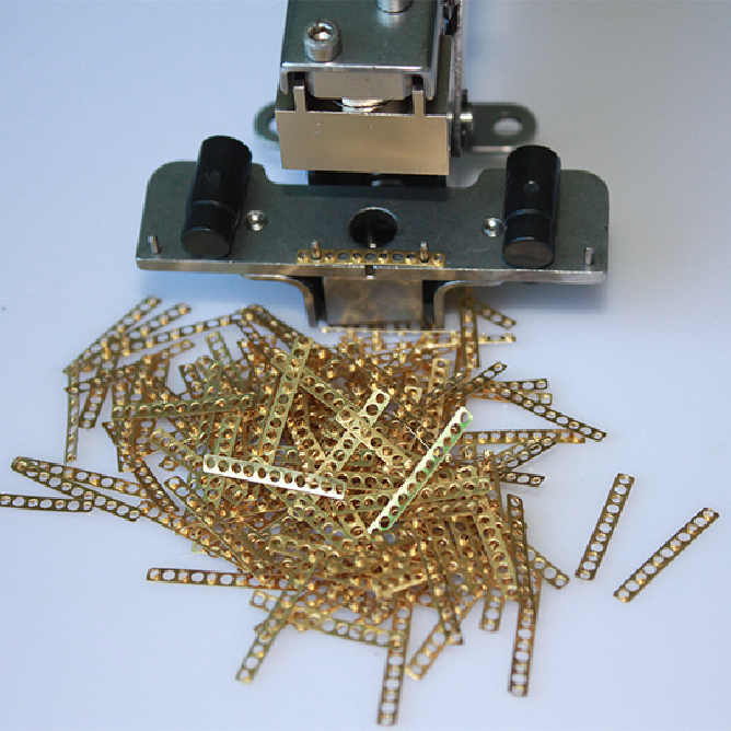 1.Position the splice clip (teeth facing up) onto the placement pins of the splice tool.